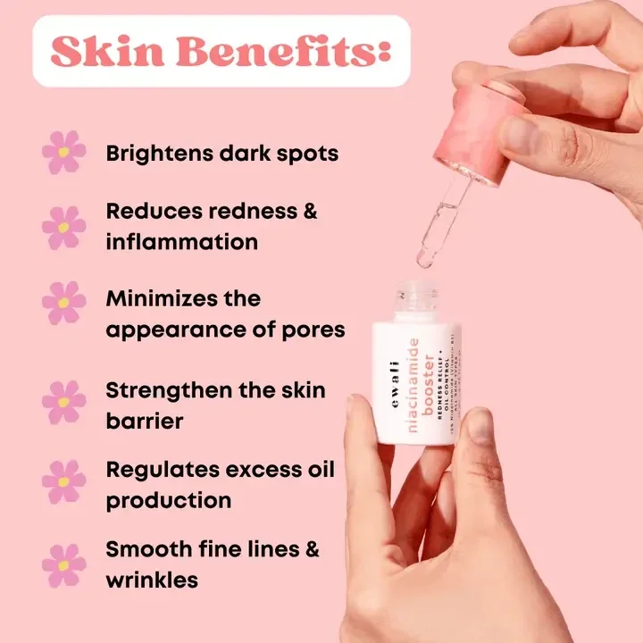 Deze booster is samengesteld met 10% niacinamide (ook bekend als vitamine B3) en pakt alle vervelende problemen aan waardoor je je minder dan fantastisch voelt — van vergrote poriën tot acne, dofheid, fijne lijntjes en rimpels. Het helpt zelfs om overtollige olieproductie te verminderen, zodat je afscheid kunt nemen van overtollige glans en een meer gebalanceerde teint kunt begroeten. - Geschikt voor alle huidtypes. (Ideaal voor de vette en acnegevoelige huid). - Geurvrij Dit is geweldig voor: Vergrote poriën, overmatige olieproductie, acne en puistjes, roodheid en gevoeligheid, ongelijkmatige huidskleur, droogheid, fijne lijntjes en rimpels. De beste dingen in een notendop: - Kalmeert roodheid en vermindert ontstekingen en irritaties. - Reguleert overtollige olieproductie. - Minimaliseert het verschijnen van vergrote poriën. - Verheldert de huid en vermindert donkere vlekken. - Behoudt de hydratatie en versterkt de huidbarrière.